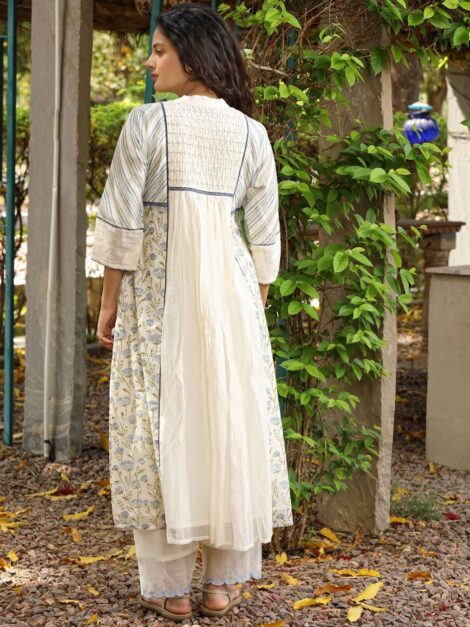 AMOREE Floral Printed Mandarin Collar Pure Silk Anarkali Kurta With Palazzos
