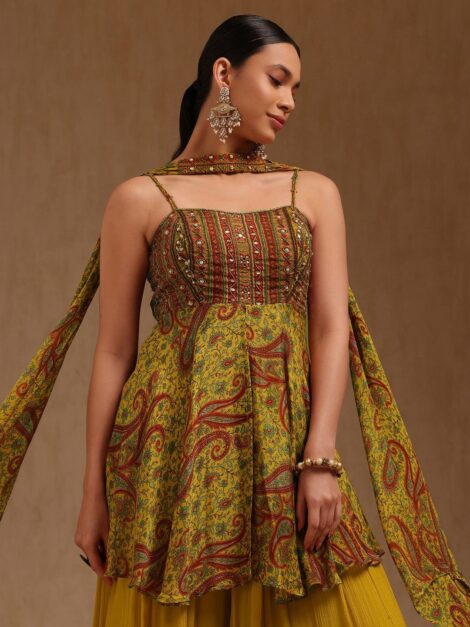 Soch Women Paisley Printed Empire Mirror Work Top with Palazzos & With Dupatta