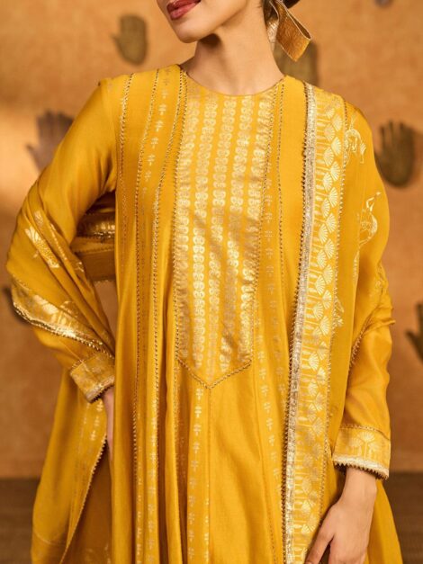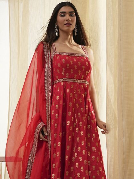 Masaba Women Floral Woven Design Gotta Patti Anarkali Kurta with Trouser & Dupatta