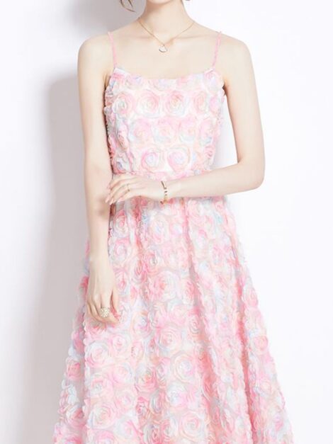 Women Shoulder Straps Floral Net Applique Maxi Dress