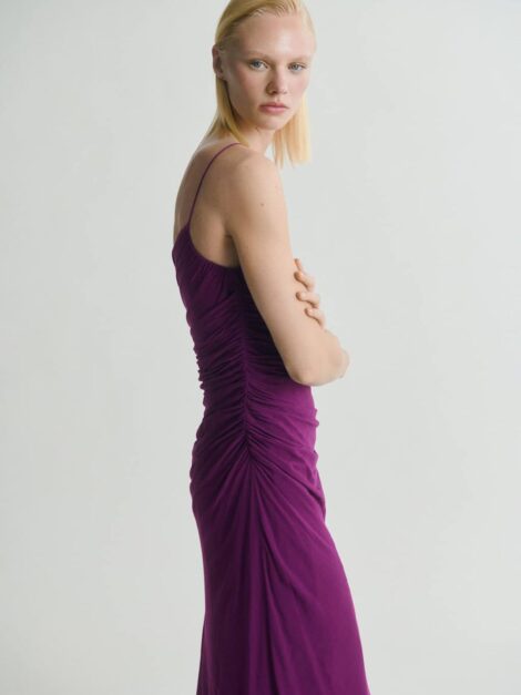 Shoulder Straps Ruched Asymmetrical Midi Dress
