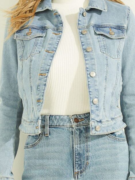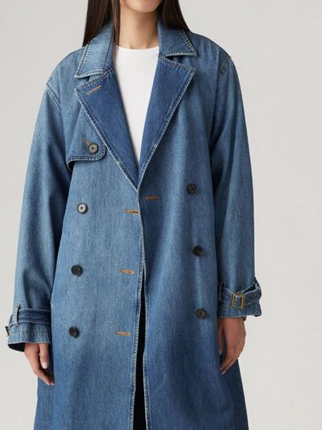 Levis Women Lapel Collar Solid Pure Cotton Denim Jacket