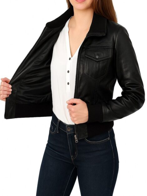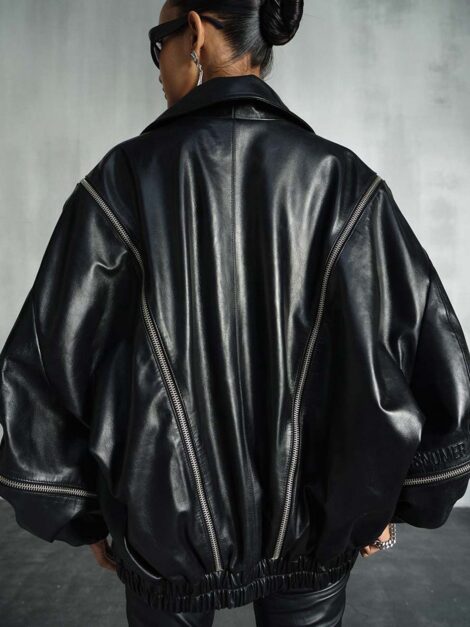 the Misnomer Unisex Spread Collar Solid Leather Casual Leather Jacket