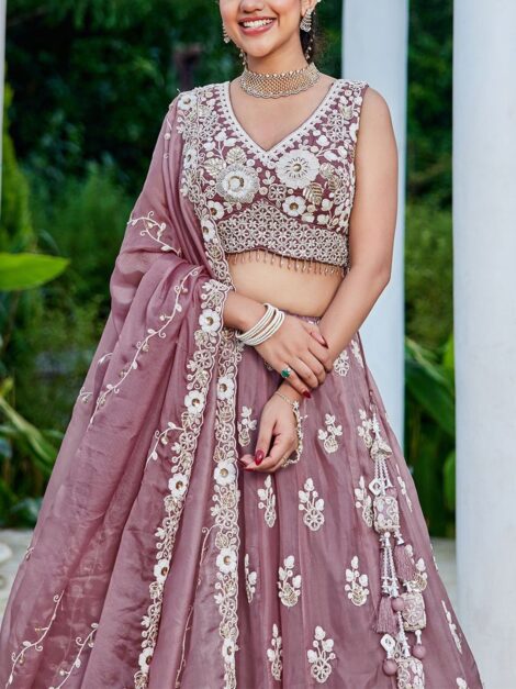 Embroidered V-Neck Ready to Wear Lehenga & Blouse With Dupatta