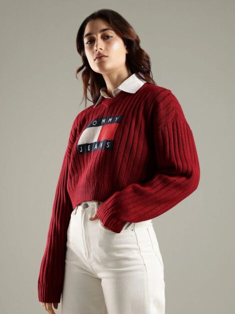 Tommy Hilfiger Women Brand Logo Printed V-Neck Regular Pullover