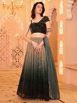 Green and beige embellished lehenga choli with dupatta, sequinned