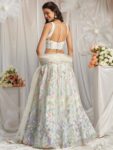 Cream-coloured, green & lavender embroidered lehenga choli with dupatta, sequinned