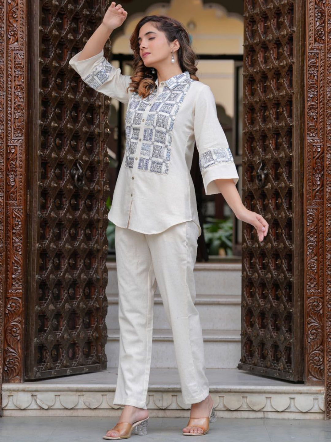 Embroidered Shirt Collar Neck Shirt With Trousers Co-Ords