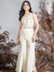 Off White Embroidered top, has a round neck and sleeveless, secured with slip-on closure