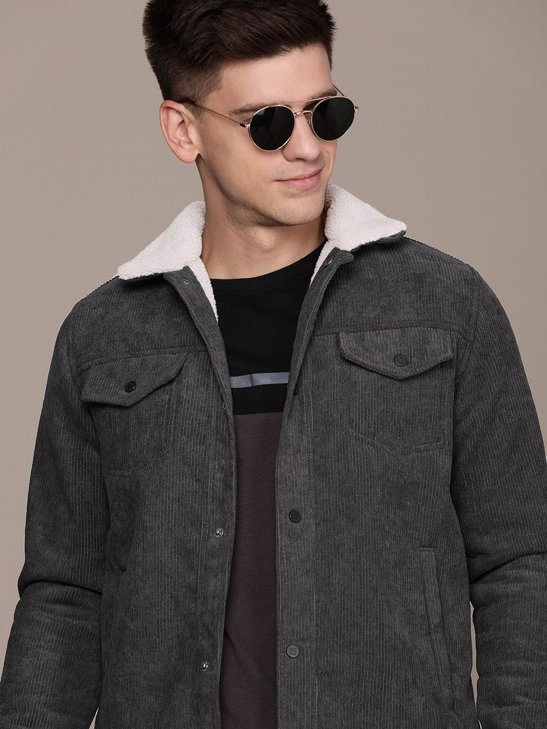 - Charcoal solid tailored jacket