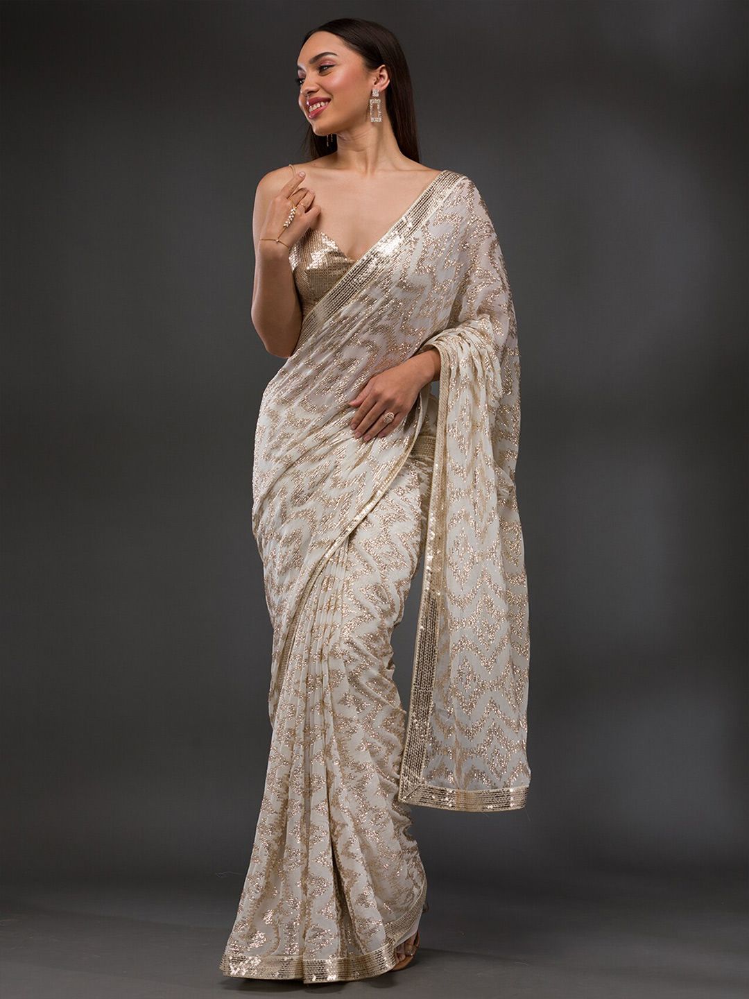 The saree comes with an unstitched blouse piece