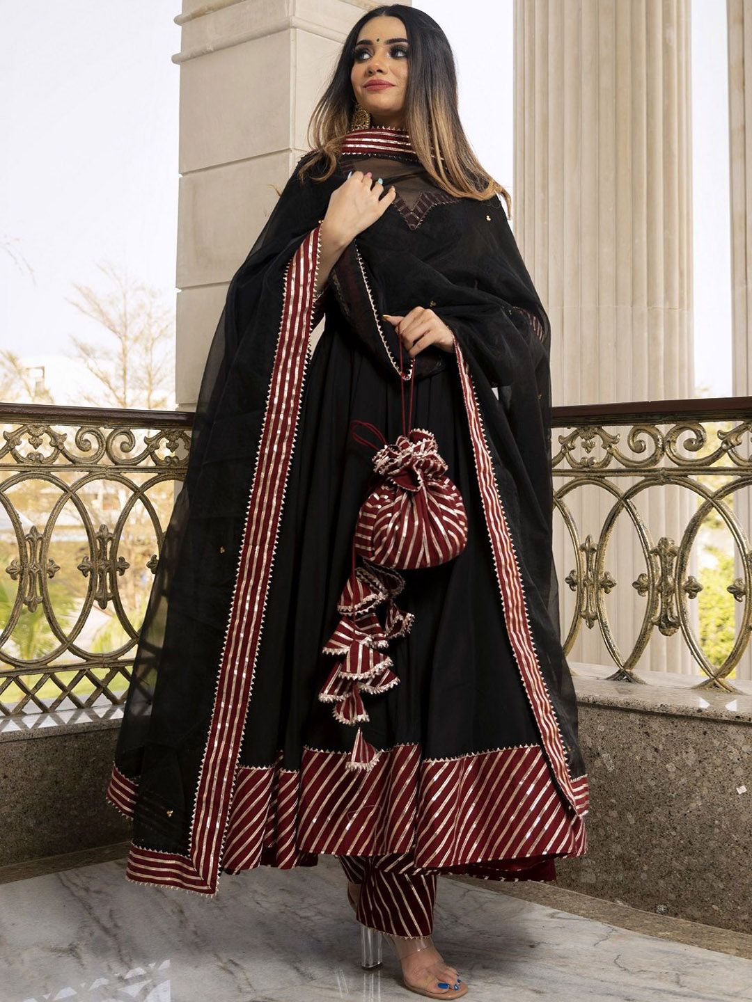 Black yoke design Kurta with Palazzos with dupatta