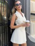 White solid Accordion Pleat mini-length skirt, has an elasticated waistband with slip-on closure