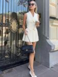 White solid Double-Breasted Vest, has a notched lapel neck and sleeveless, secured with button closure