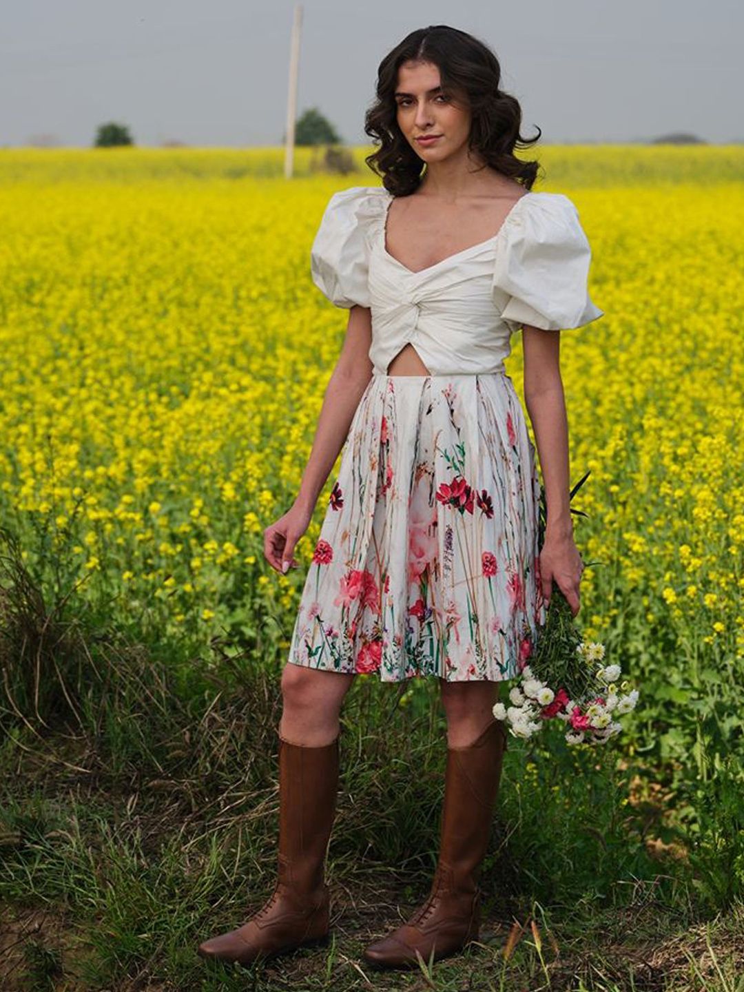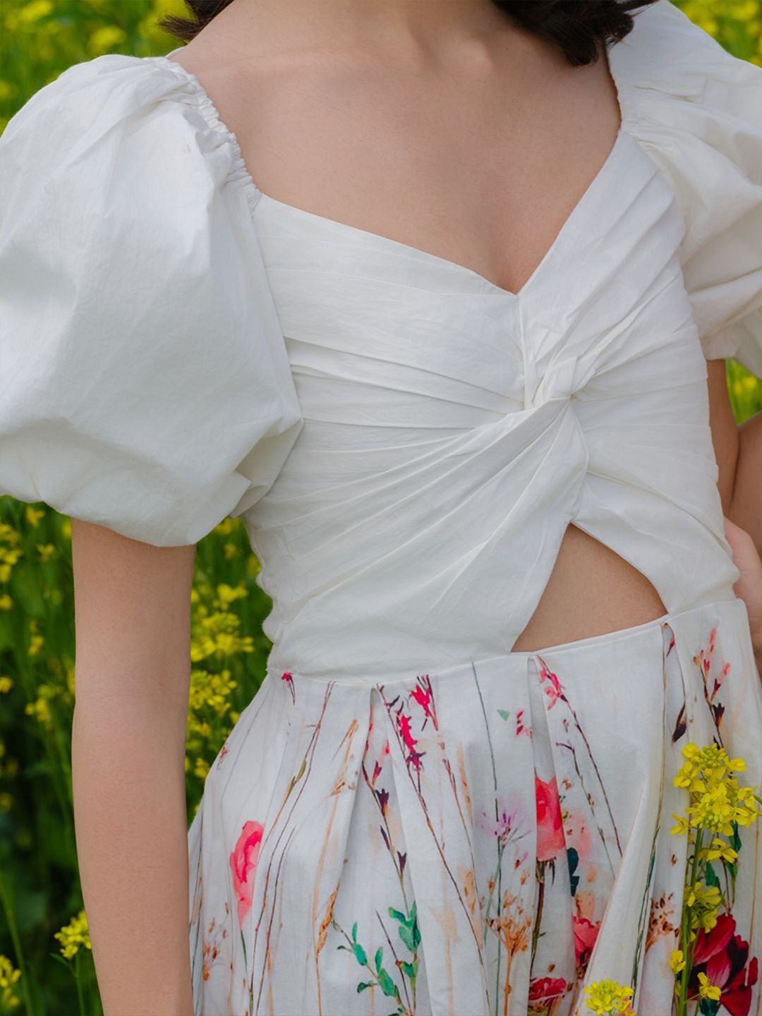 Be the first to review “Women Floral Printed Puff Sleeve Cut-Outs Fit & Flare Dress”